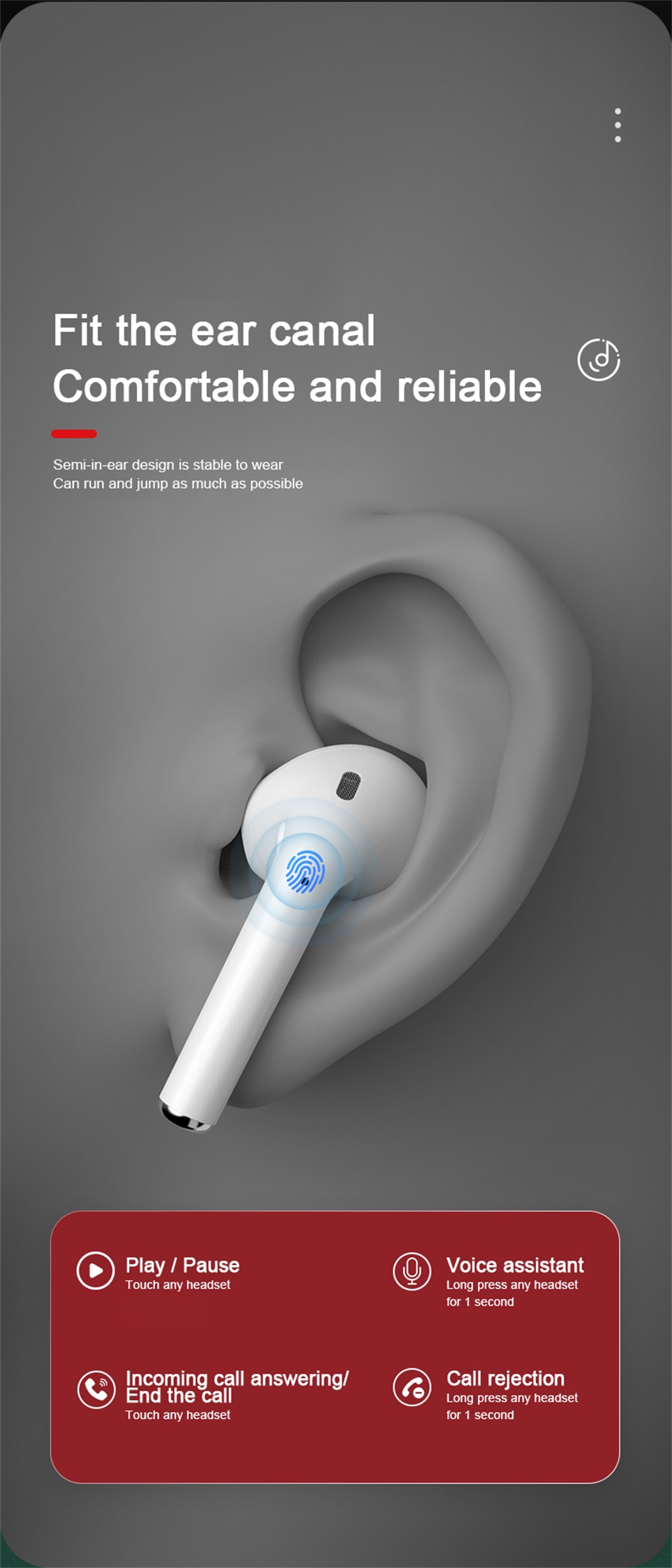 Built-in 300mAh battery(includes charging case) for up to 300 hours of using time
